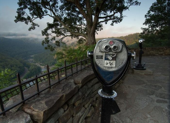 The name of this state park should give you an idea of where it’s located and the incredible aerial views it provides. Hawks Nest State Park is located on 270 acres above the New River Gorge. The park’s clifftop overlook offers a magnificent view of the New River some 750 feet below, and is sometimes referred to as the “Grand Canyon of the East.” There are plenty of paved pathways and well-maintained stairs throughout the park, in addition to a rustic lodge, an on-site restaurant and an aerial tramway.